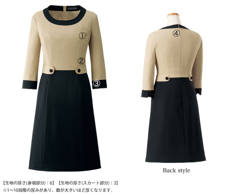 - ホームクリーニング、2WAYストレッチ、生地厚6(身頃部分)、生地厚3(スカート部分)