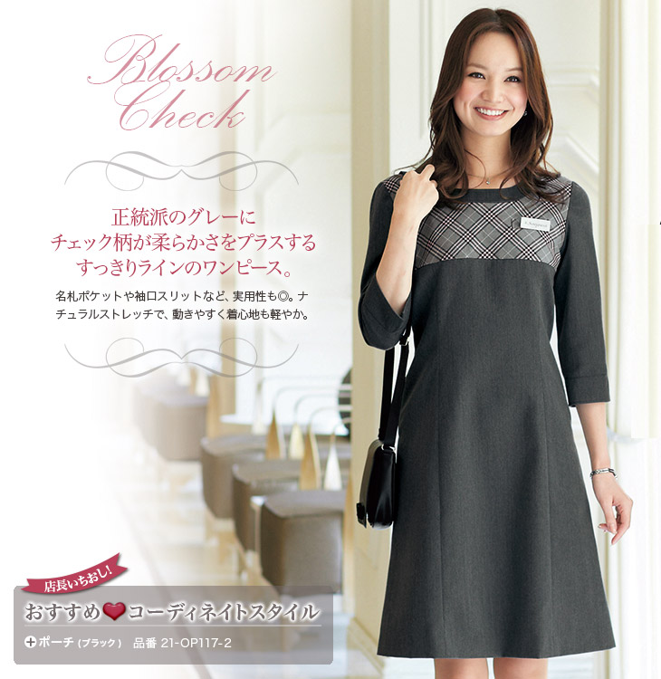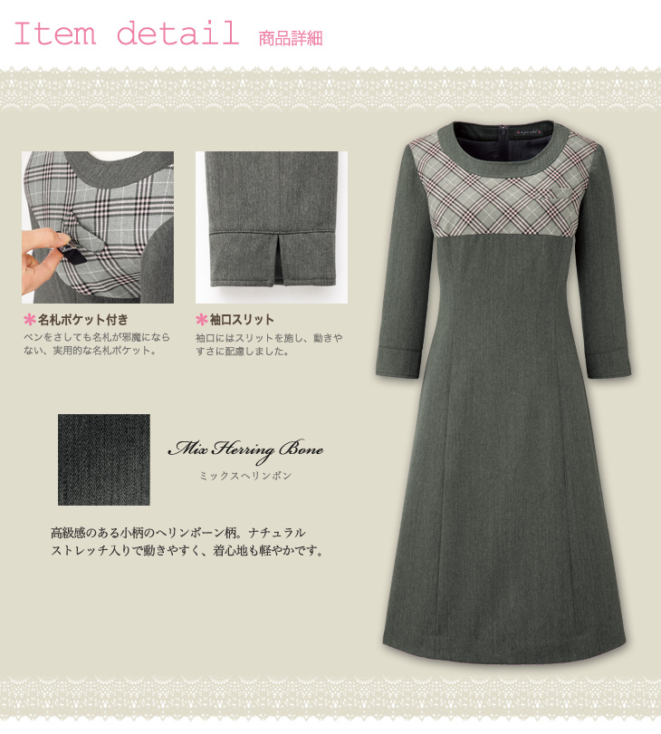 - 身頃部分:ブロッサムチェック/スカート部分:ミックスヘリンボン (混率共にポリエステル70%、毛30%)
