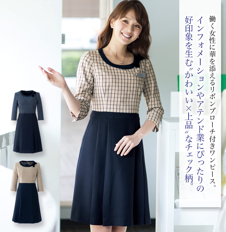 【在庫限り】[通年]医療現場におすすめ!癒し系エレガント・ワンピース[七分袖](21-61630)
