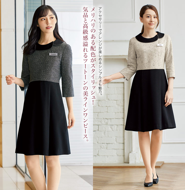 [通年]<上質な大人可愛さ>ミックスツイードの七分袖ワンピース(21-61680)