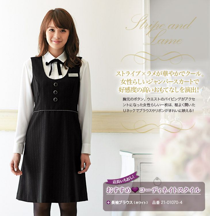 【在庫限り】[通年]<華やかなおもてなしに!>ストライプ×ラメのジャンパースカート(21-61700)
