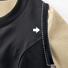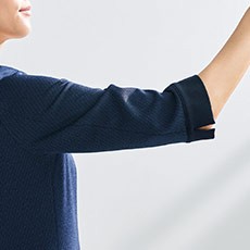 腕まわりの動きを良くし、ストレスなく着用していただけます。腕を上げても裾が一緒に上がりにくいように改良し、美しい佇まいをキープできます。