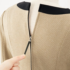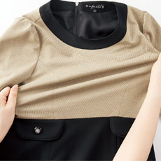 ワンピース身頃部分:上品な杢糸を使用したニット素材。カルゼ組織で品の良い印象を醸し出します。ハイストレッチで着心地柔らか。