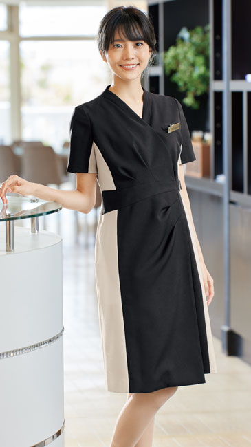 スタイルアップとエレガントさが調和したワンピース。美容サロンやクリニック、エステの業界で働く女性におすすめです。