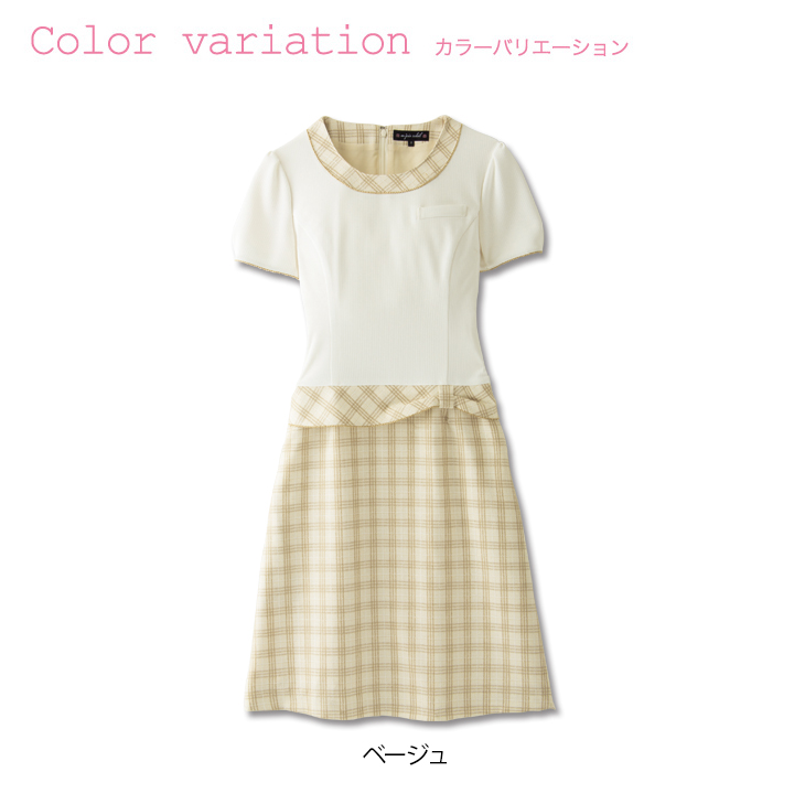 【在庫限り】[春夏用]白×ベージュが爽やかな夏らしいワンピース(21-66380)