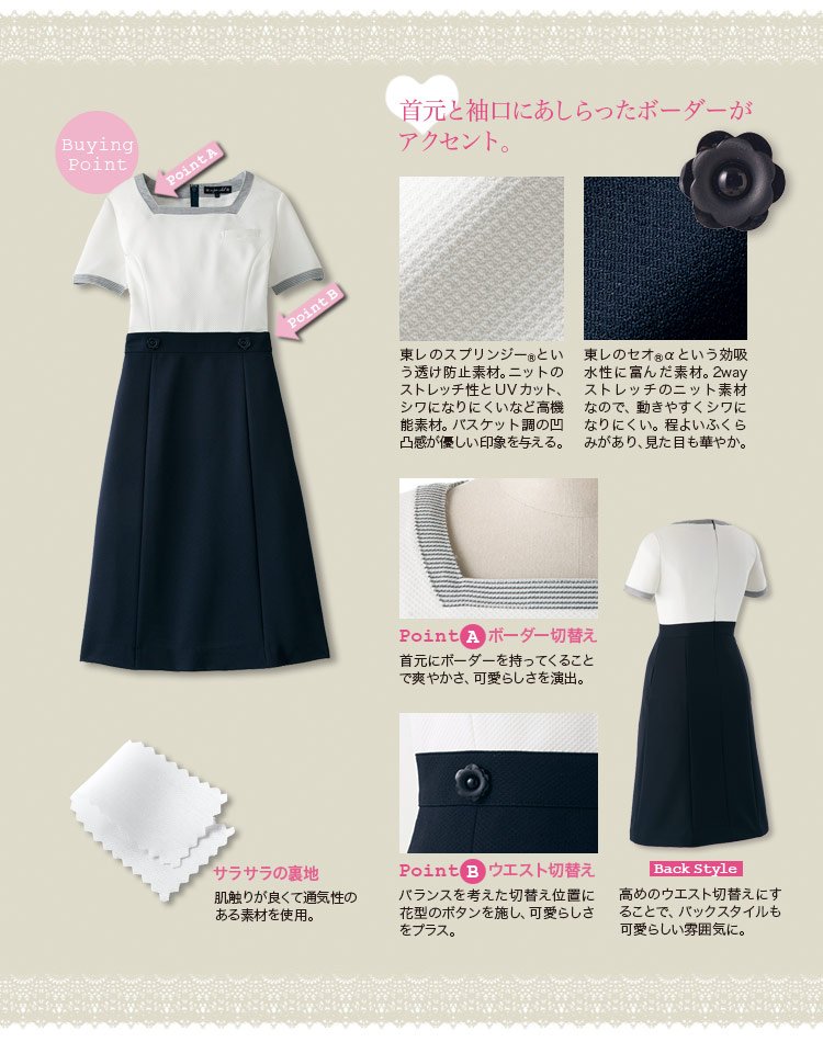 - ホームクリーニング、2WAYストレッチ、吸汗・速乾、清涼裏地、高通気 [身頃部分]防透、生地厚7 [スカート部分]ニット、生地厚6