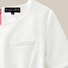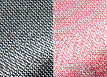 ピンク、ネイビーの2色展開のシャークスキン素材。白糸とピンク、ネイビーの糸を掛け合わせて織った組織で深みがあり、 優しい雰囲気を醸し出します。さり気ないラメが清涼感をプラス。