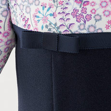 ネイビーのグログランテープでほんのり甘いディテールを。