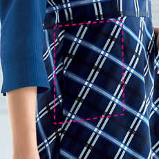 生地の切り替え部分に目立たないスリットポケット付きで実用的なデザイン。