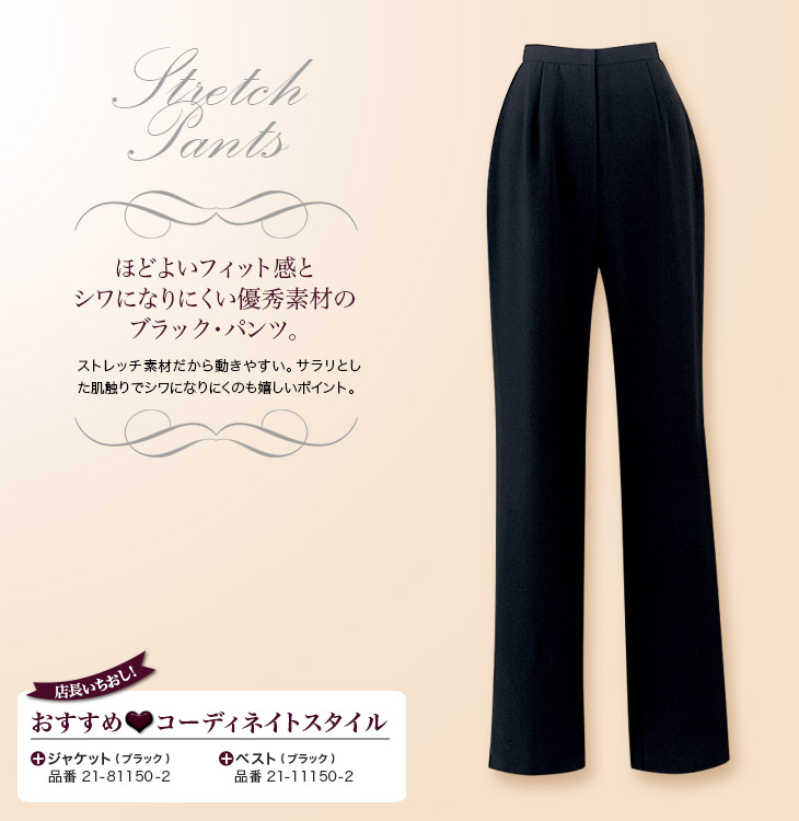 【在庫限り】[通年]ストレッチ性あり・シワになりにくい優秀素材の黒のパンツ(21-71150)