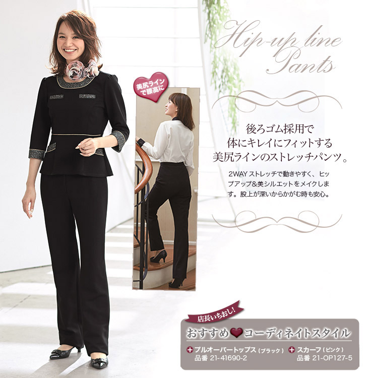 【在庫限り】[通年]動きやすくシワになりにくいニット素材!美尻ラインの後ろゴムパンツ(21-71693)