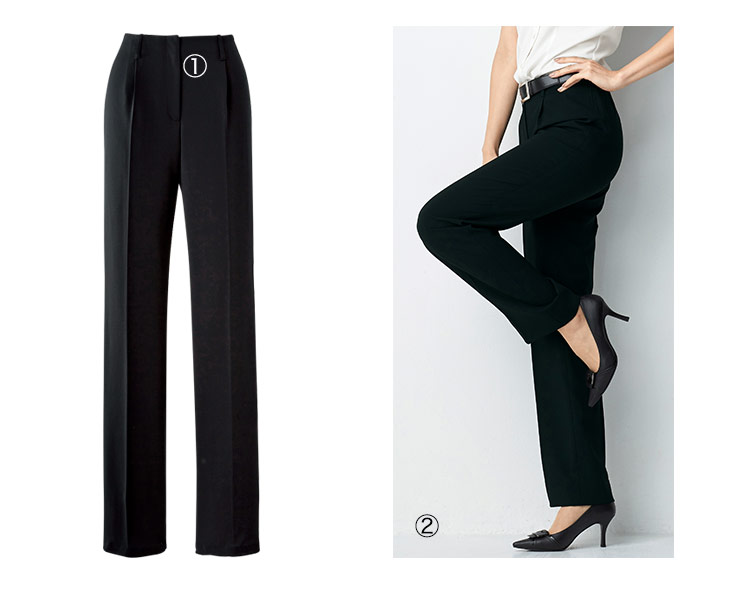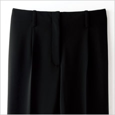 フロントにタックを施しデザイン性と動きやすさを両立。センタープレスで脚長効果も。
