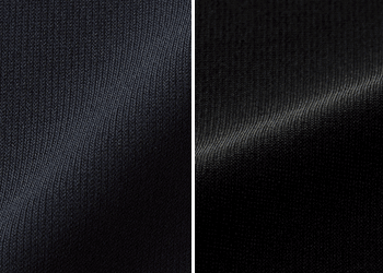 再生ポリエステルを複合し、環境に配慮したエコ素材(東レ㈱エコユース使用)。プレーンな表面感で、しなやかな弾力と快適なストレッチ性を併せ持ったニット素材。肌当たりも良く、上品な印象を与えます。