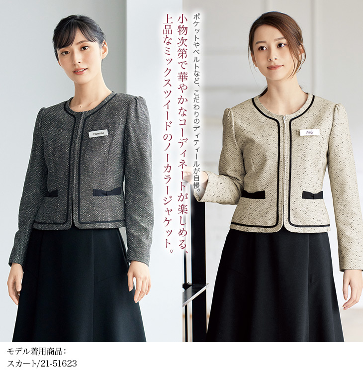 [通年]<上質な大人可愛さ>ミックスツイードのノーカラージャケット(21-81680)