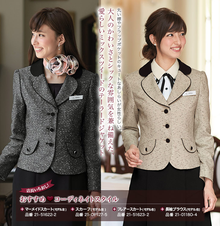 【在庫限り】[通年]<上質な大人可愛さ>ミックスツイードのテーラードジャケット(21-81685)