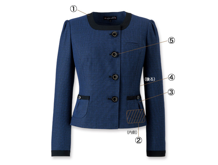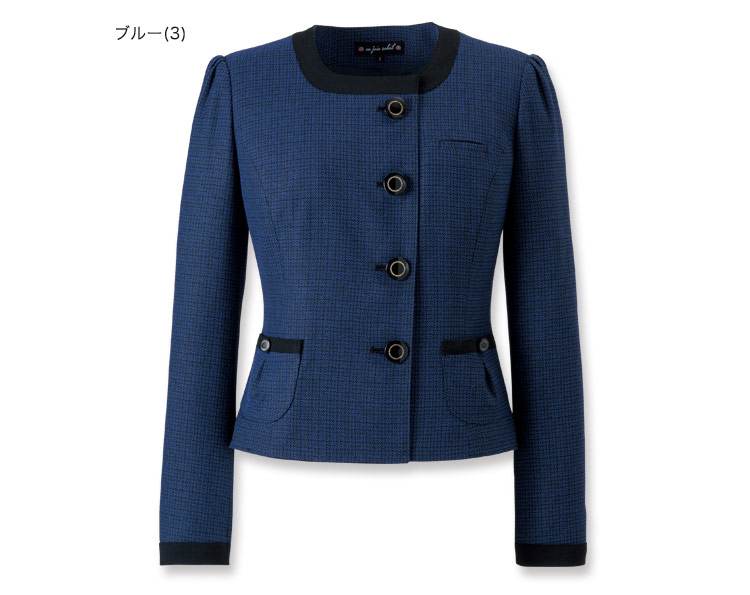 [秋冬用]深いブルーが聡明で美しい、ツイード素材のノーカラー・ジャケット(21-81730)