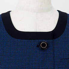 スクエア風のノーカラータイプの首元は、すっきりと大人っぽい印象