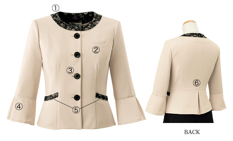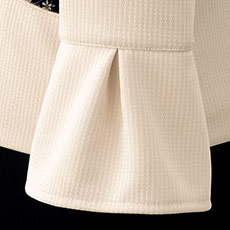 袖口の切り替えにタックを施し、上品に広がるフレアスリーブはおもてなしの動作をより美しく魅せてくれます。