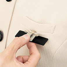 胸ポケットにペンを指しても名札が邪魔にならない実用性の高い名札ポケット付き。