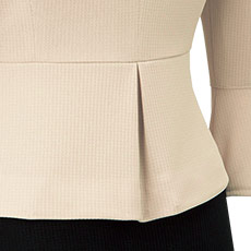 エレガントなバックスタイル。タックの入ったペプラム切り替えにになっており、ウエスト位置を高く感じさせ、脚長効果も期待できます。