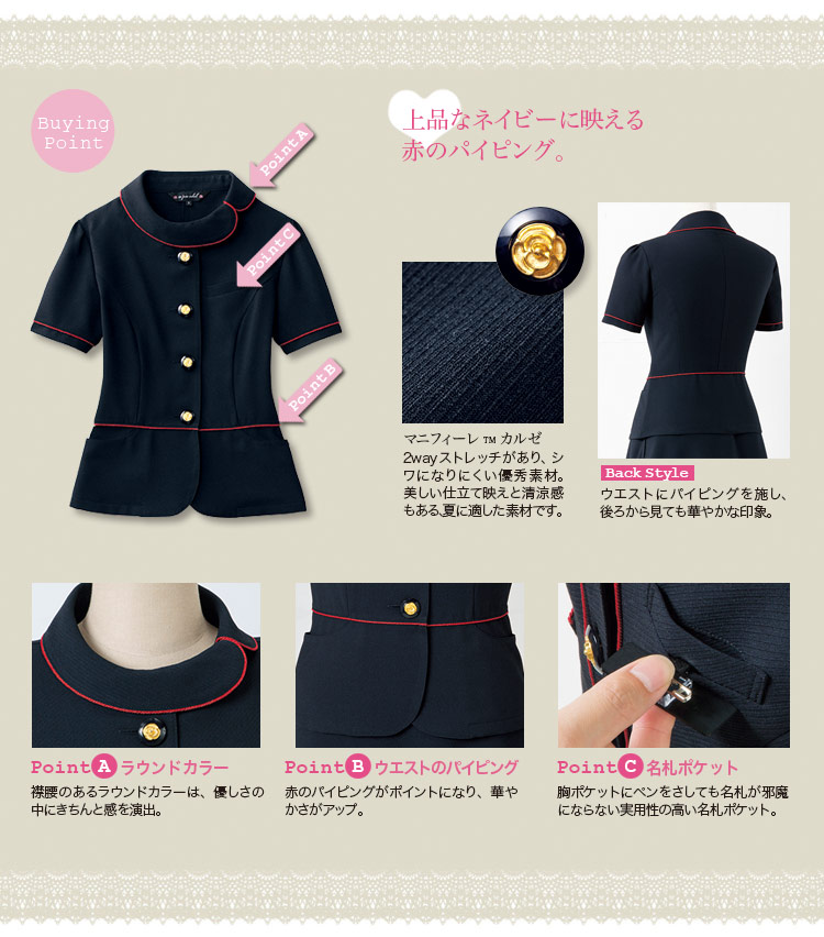 [春夏用]ネイビーに映える赤のパイピングが華やかなサマージャケット(21-86465)
