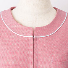 ピンク、ネイビーの2色展開のシャークスキン素材。白糸とピンク、ネイビーの糸を掛け合わせて織った組織で深みがあり、優しい雰囲気を醸し出します。さり気ないラメが清涼感をプラス。