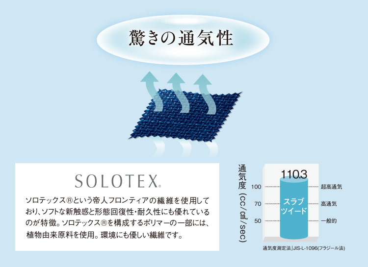 ふんわりと軽く、柔らかな肌触りの素材。高通気で吸汗速乾性も兼ね備えています。