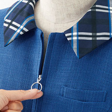 - フロントファスナー、名札ポケット、生地厚3、エコ素材