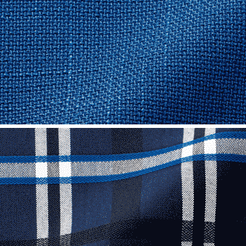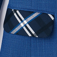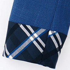 深みのある紺をベースに、リボンを重ねたようなチェック柄。スポーティですっきとした印象を与えます。再生ポリエステルを一部使用し、環境にも配慮した素材です。