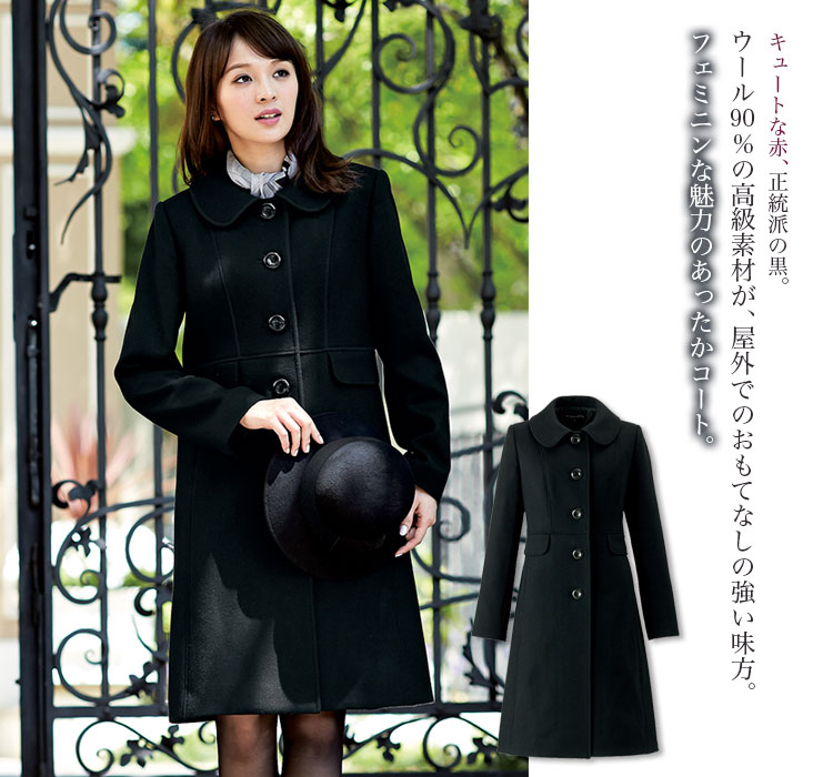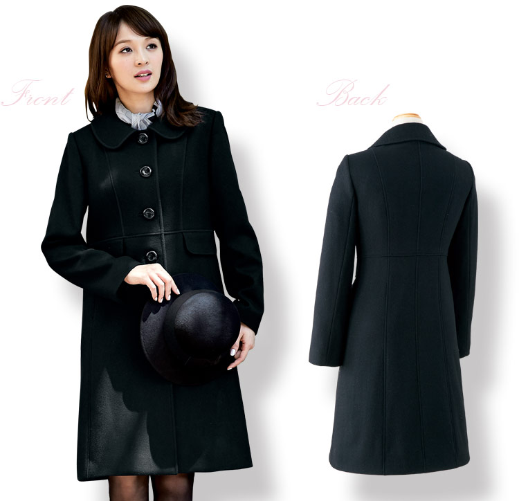 シックなコートで寒い日も華やかにお出迎え。重ね着しやすいゆとりのあるシルエットのコート。