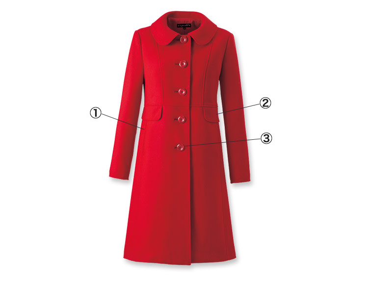 【在庫限り】[秋冬用]丸襟、大きめボタンが可愛い、ウール90%のあったかコート(21-9000)