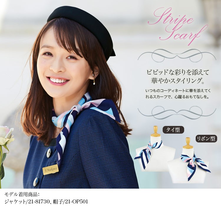 [通年]清潔感と華やかさを添えるシャープなストライプ柄スカーフ(21-OP139)