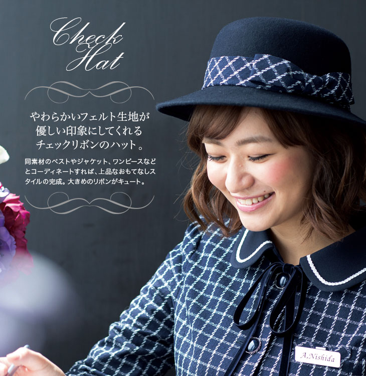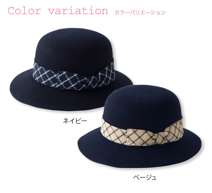 【在庫限り】大きめチェックリボンがキュートなフェルトタイプの帽子(21-OP500)