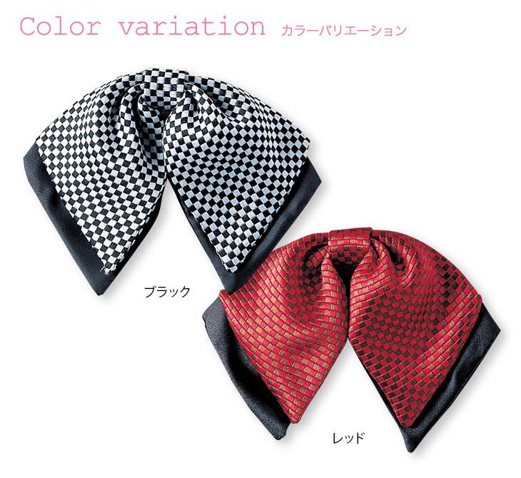 レッドを購入しました。ブローチタイプのリボンです。実際に着けてみるとイメージより小さく感じます。フリルのスタンドカラーブラウスに合わせています。丁度いいです。