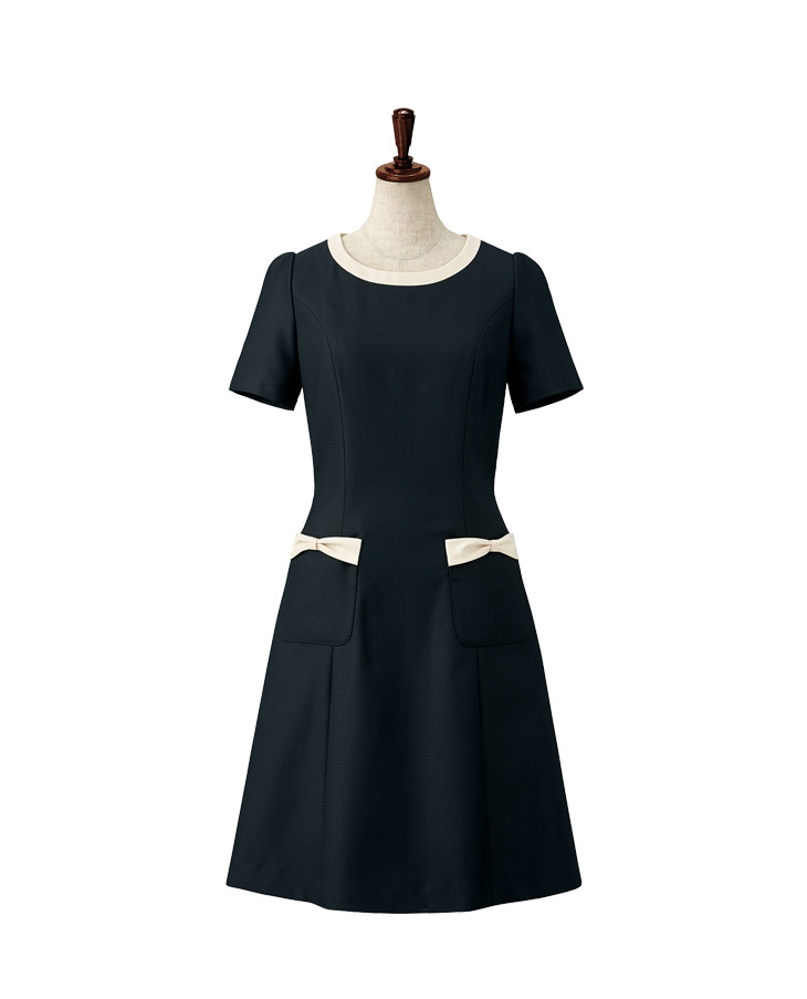 【在庫限り】[春夏用]ネイビー×ベージュの配色とリボンが可愛いワンピース(22-A50650)
