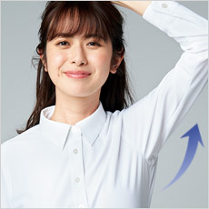 腕がラクラク上がり、シャツの裾が上がってこない、フレックスリーブ仕様。