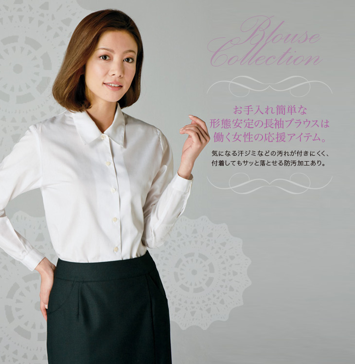 [通年]<イージーケア>形態安定加工ありベーシック・ブラウス[長袖](22-AR1433)