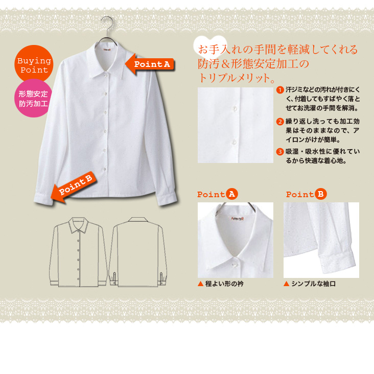 [通年]<イージーケア>形態安定加工ありベーシック・ブラウス[長袖](22-AR1433)