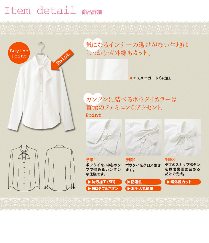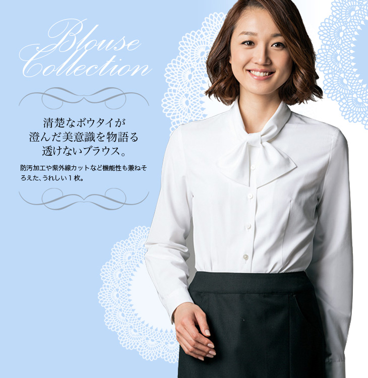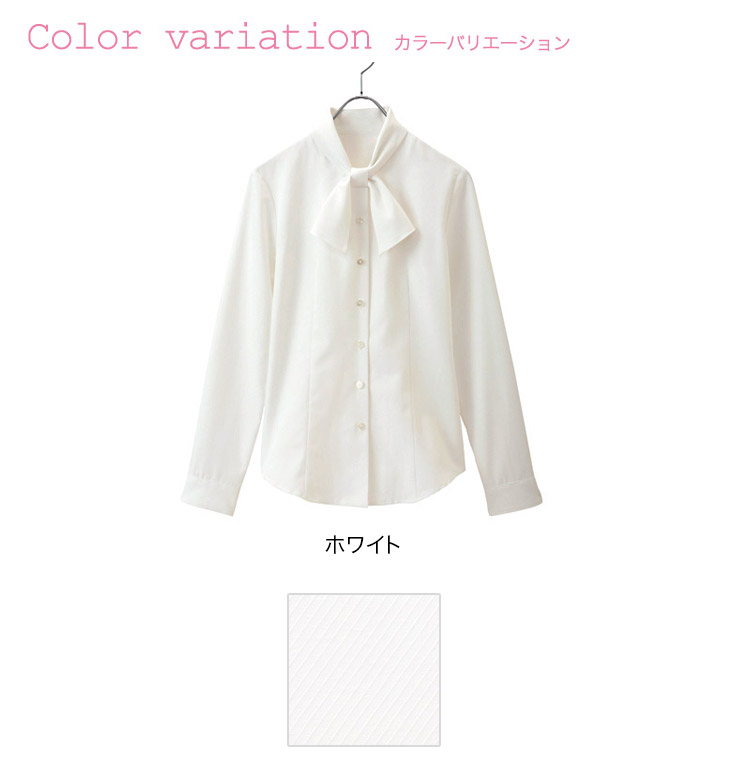 【在庫限り】[通年]<化粧汚れがすっきり落ちる>ボウタイ付き清楚系ブラウス[長袖](22-AR1452)