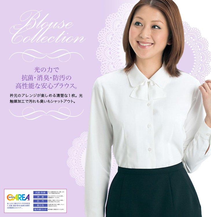 【在庫限り】[通年]<光触媒の力で安心キレイ>リボン付きブラウス[長袖](22-AR1456)