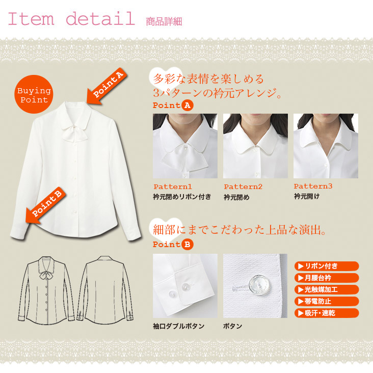 【在庫限り】[通年]<光触媒の力で安心キレイ>リボン付きブラウス[長袖](22-AR1456)