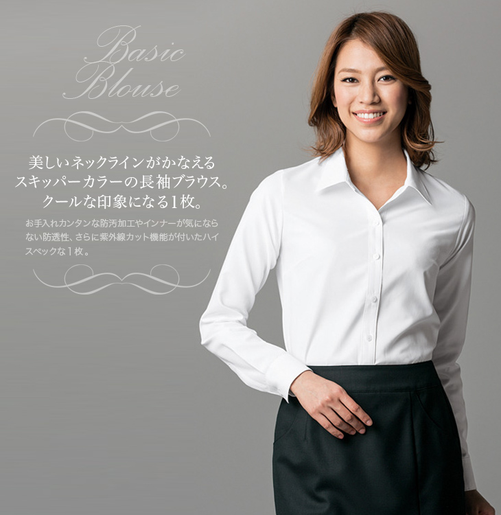 【在庫限り】[通年]化粧汚れがすっきり落ちる スキッパーカラーのブラウス[長袖](22-AR1475)