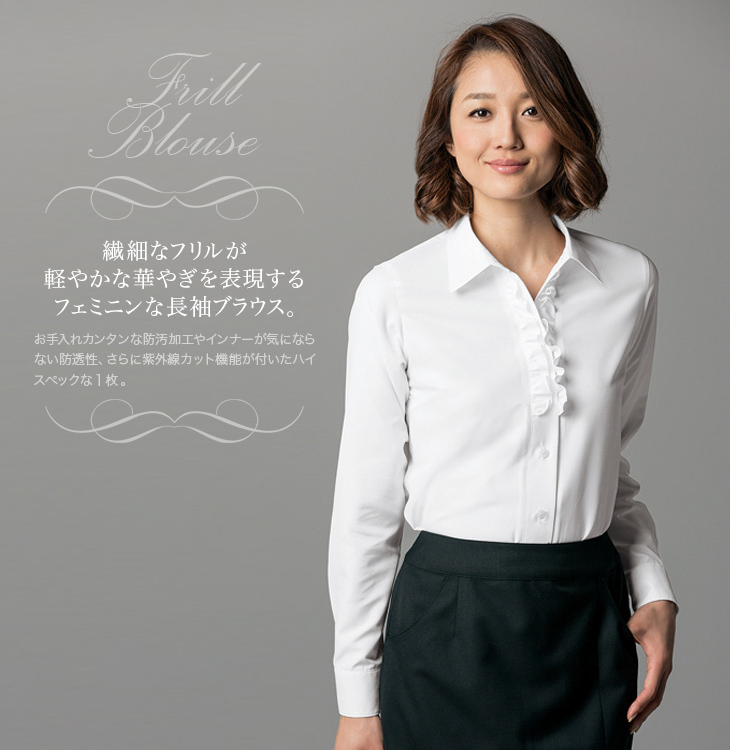 【在庫限り】[通年]化粧汚れがすっきり落ちる 華やぎフリルブラウス[長袖](22-AR1476)