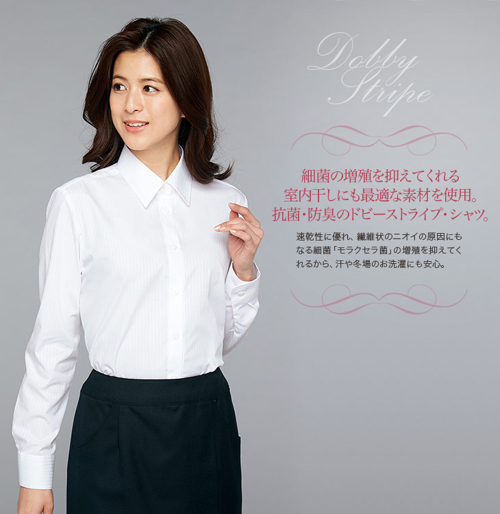 [通年]<抗菌・防臭/部屋干しに最適> ドビーストライプ・長袖シャツ(22-AR1482)