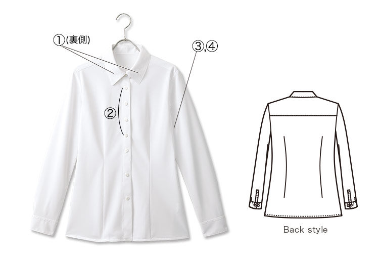 ライトリボン(22-NF180)が付けられる襟下ボタン付き。