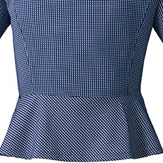 後ろはぺプラムの切替えで、引き締まったフェミニンなシルエットに。
