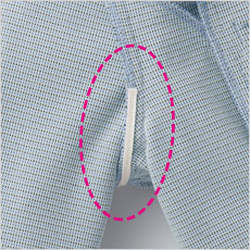 - 一重仕立て、左胸タフポケット、ペンホルダー、フレックスリーブⅡ、デオドラントテープ、半袖口スリット
