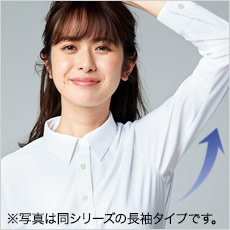 腕がラクラク上がり、シャツの裾が上がってこない、フレックスリーブ仕様。