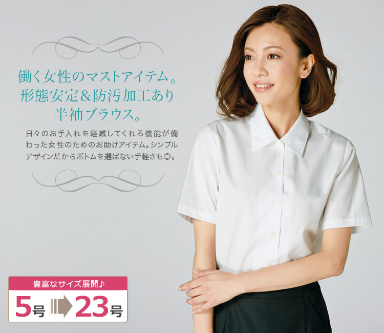 [通年]イージーケア! 形態安定ベーシック・ブラウス[半袖](22-AR1633)