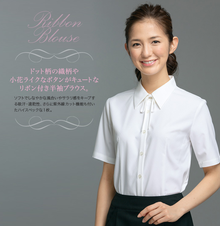 【在庫限り】[通年]高機能が嬉しい! リボン付きブラウス[半袖](22-AR1640)